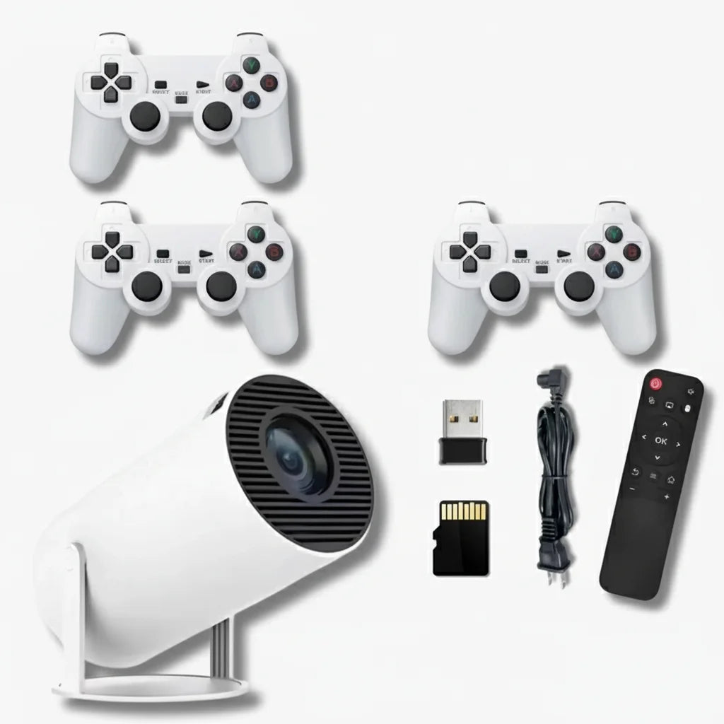 No complicated tech. Your ArcadeVision projector comes with everything you need: controllers, remote, and all cables. Just plug, play, and enjoy instant entertainment.